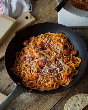 Wenn der Hunger groß ist und die Zeit knapp, ist dieses einfache Gericht genau das Richtige. Das Nudelgericht steht in 30 Minuten frisch auf dem Tisch - perfekt, wenn es schnell gehen muss. Mit Spaghetti, würzigen Mettwürstchen und aromatischer Tomatensauce zaubern Sie im Handumdrehen ein schnelles Mittag- oder Abendessen, das die ganze Familie begeistert. Das Beste daran: Alles wird in nur einer einzigen Pfanne zubereitet! Weniger Abwasch, minimaler Aufwand und maximale Zufriedenheit: Das macht diese Methode so beliebt.