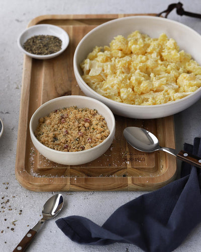 Wasser, Butter, Salz und die Hälfte der Milch in einem Topf zum Kochen bringen. Den Topf vom Herd nehmen und das Tapiokamehl dazugeben und mit einem Holzlöffel kurz unterrühren. Anschließend die Eier und die restliche Milch hinzufügen und alles zu einem geschmeidigen glatten Teig verarbeiten.