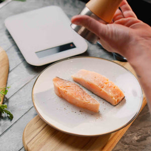 Lachsfilets mit Salz, Pfeffer und etwas Zitronensaft würzen.