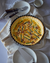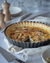 Backen Sie die Tarte im Ofen bei 180°C für etwa 30 bis 35 Minuten, oder bis sie goldbraun ist und die Füllung fest geworden ist.