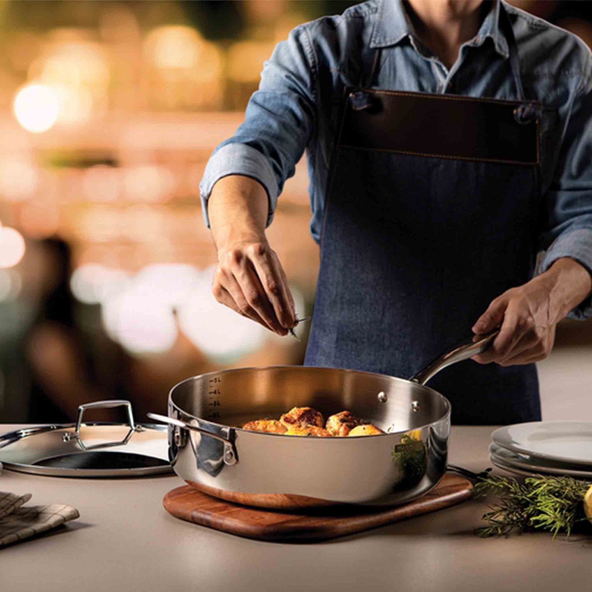 Die hochwertige Schmorpfanne aus der GRANO Serie vereint zeitloses Design mit professioneller Leistung. Mit einem Durchmesser von 30 cm und einem großzügigen Fassungsvermögen von 5,6 Litern bietet sie ausreichend Platz zum Braten, Schmoren und Dünsten verschiedenster Gerichte.