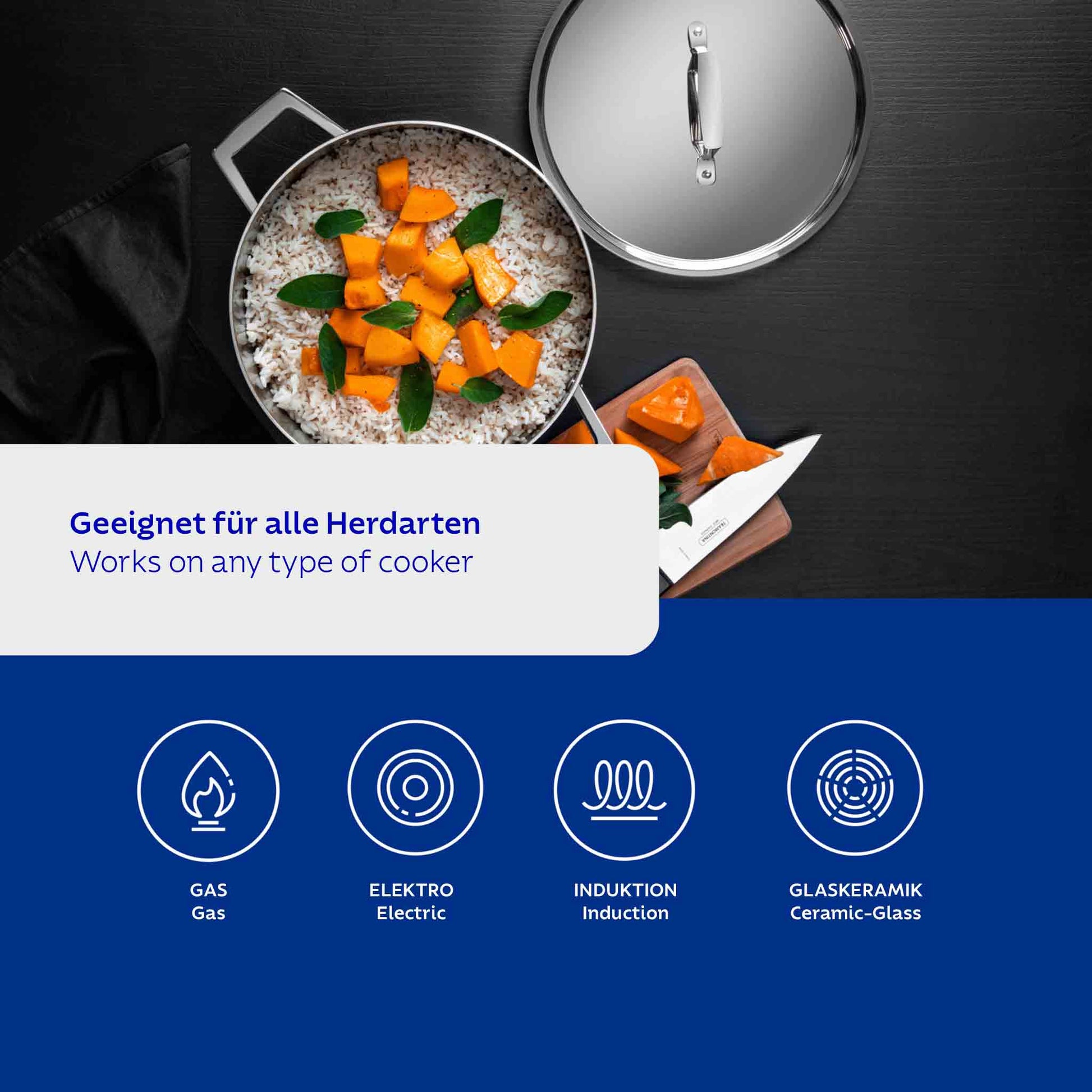 • Geeignet für alle Herdarten: Induktion, Gas, Elektro und Glaskeramik