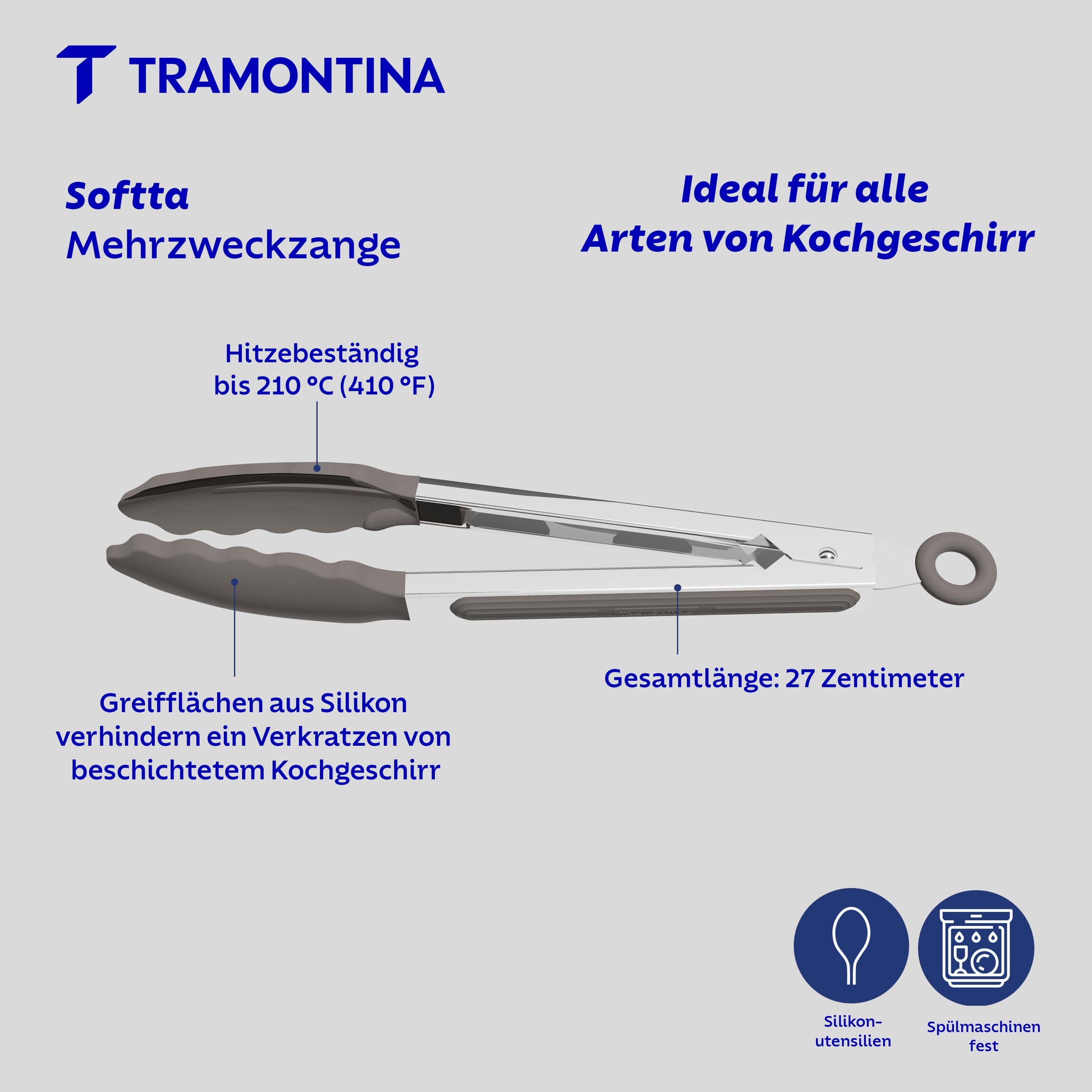 Die Greifflächen aus hitzebeständigem Silikon schützen empfindliche und beschichtete Pfannen und Töpfe zuverlässig vor Kratzern, ideal für den Einsatz in antihaftbeschichtetem Kochgeschirr.