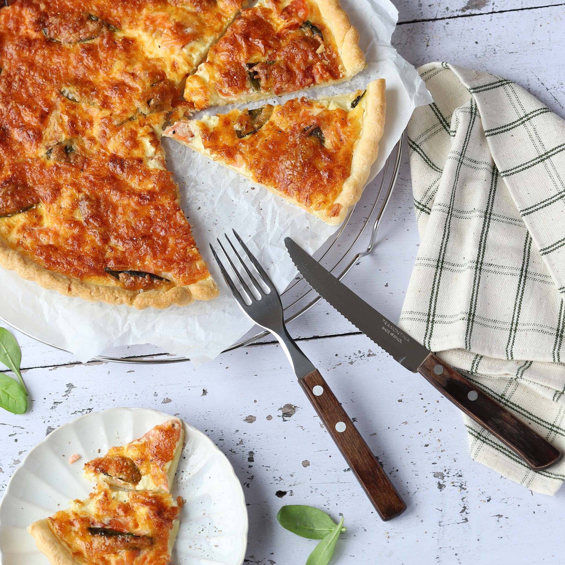 Der markante Holzgriff wurde vor mehr als 30 Jahren von Tramontina in einem speziellen Produktionsverfahren entwickelt. Das FSC®-zertifizierte Kiefernholz wird in feinen Schichten mit Harz imprägniert, unter Hitzeeinfluss gepresst,
