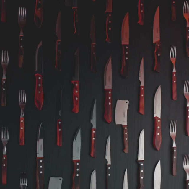 Die Messerklingen unserer Steakmesser werden aus aus hochwertigem Klingenstahl AISI 420 (auch bekannt als X46Cr13) hergestellt. Der aufwendige Härtevorgang sorgt für hervorragende Schneideigenschaften, hohe Schnitthaltigkeit und optimalen Korrosionsschutz.
